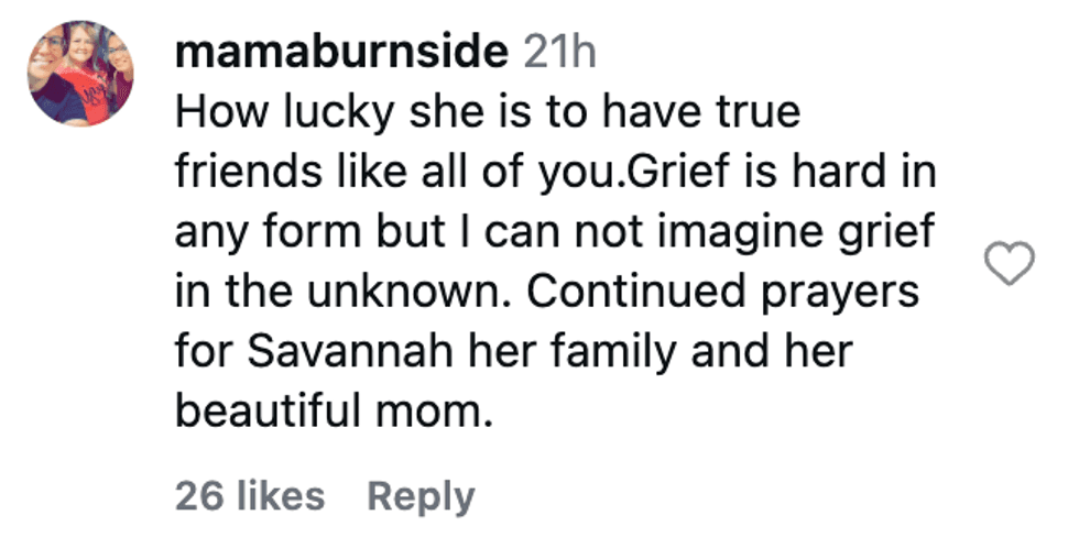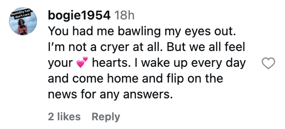 “I think we just keep it going. We keep loving her, keep our arms around her. And we’re gonna get her back here.”