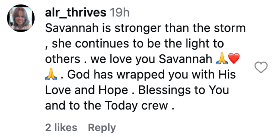 “Savannah has come back to her home here at 30 Rock in Studio 1A. We got to see her this morning, and in her perfect way, she talked to all of us, hugged every single person in this room, the crew.”