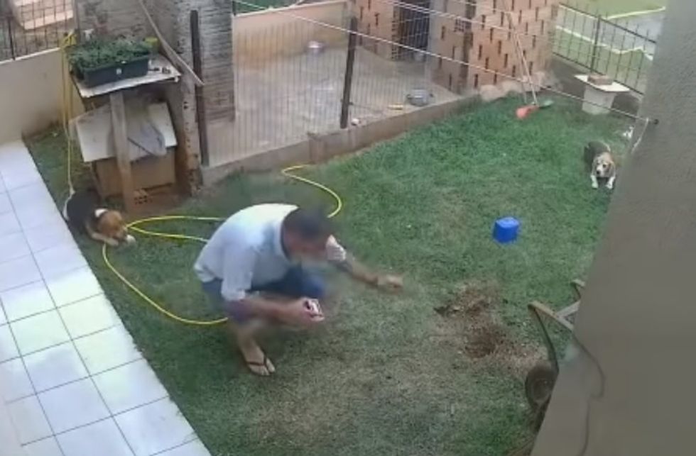 Then, without clearing the area or putting his dogs inside, he struck a match and dropped it, hoping to start a fire. No, he didn't seem to have a hose or fire extinguisher handy to put out the fire he was trying to start.