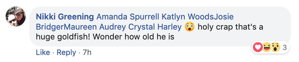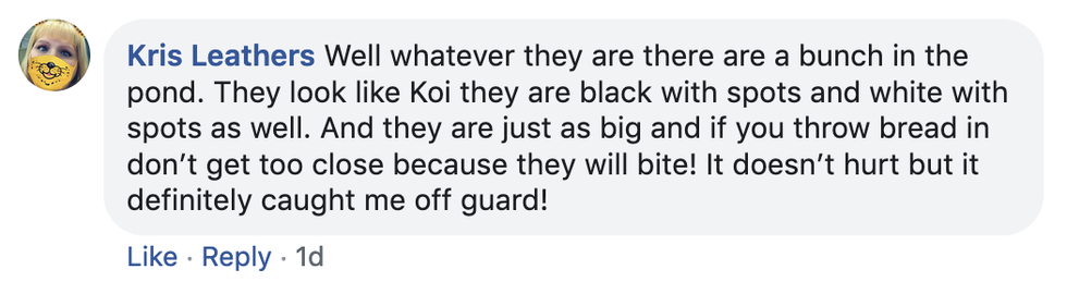 She jokingly reminded people never to flush your pets down the pipes, otherwise, they'll wind up ending in a random pond looking like this scaly wonder.