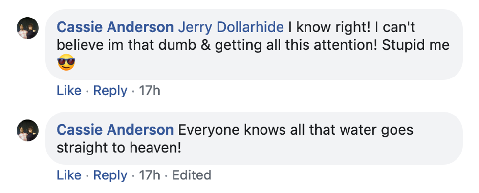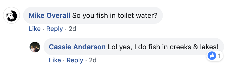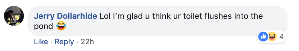 She also got a good ribbing in the comments for thinking toilet water flushes out to ponds.
