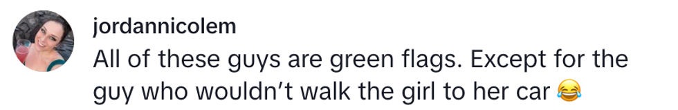 "That's why you needed to walk her to her car!"