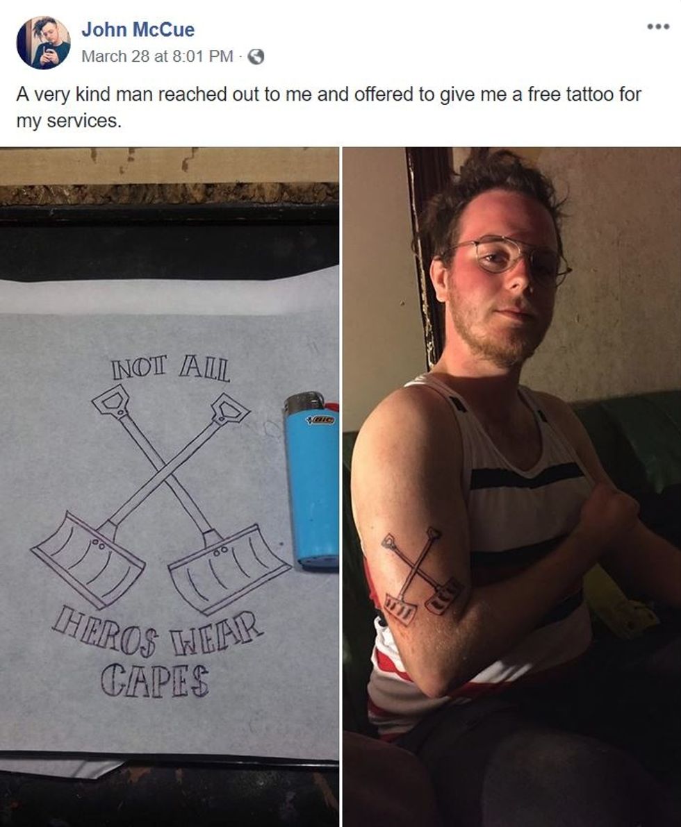 For his tremendous service though McCue was given one last parting tip from a local tattoo artist.