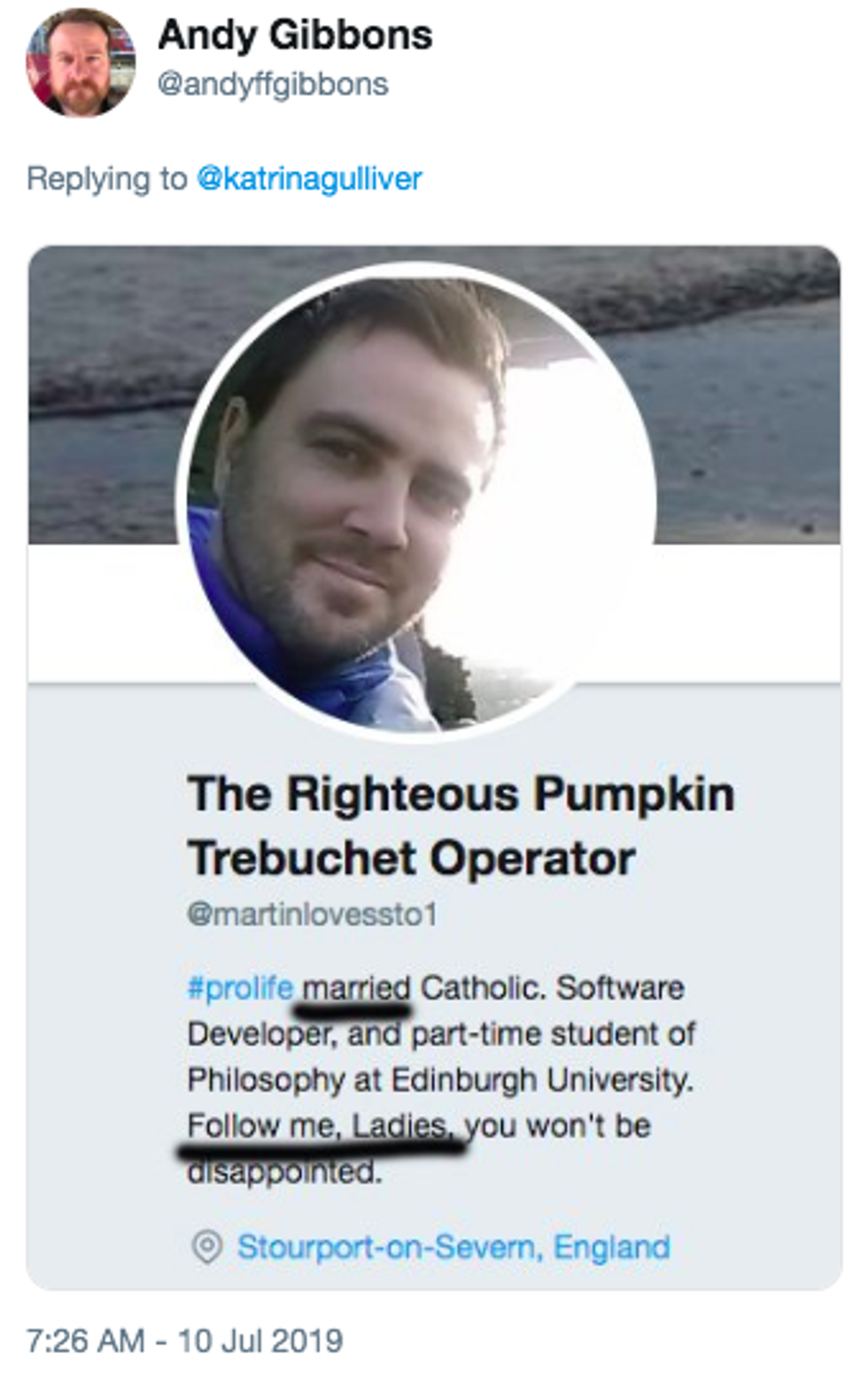 "#prolife married Catholic. Software Developer, and part-time student of Philosophy at Edinburgh University."