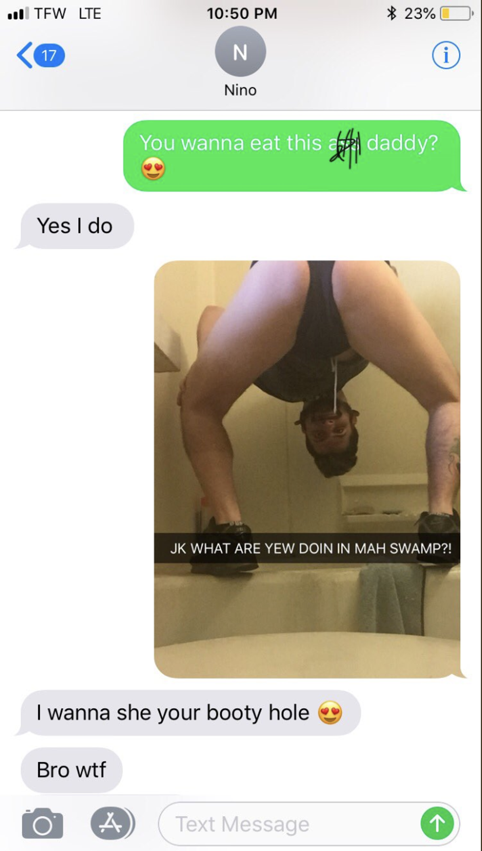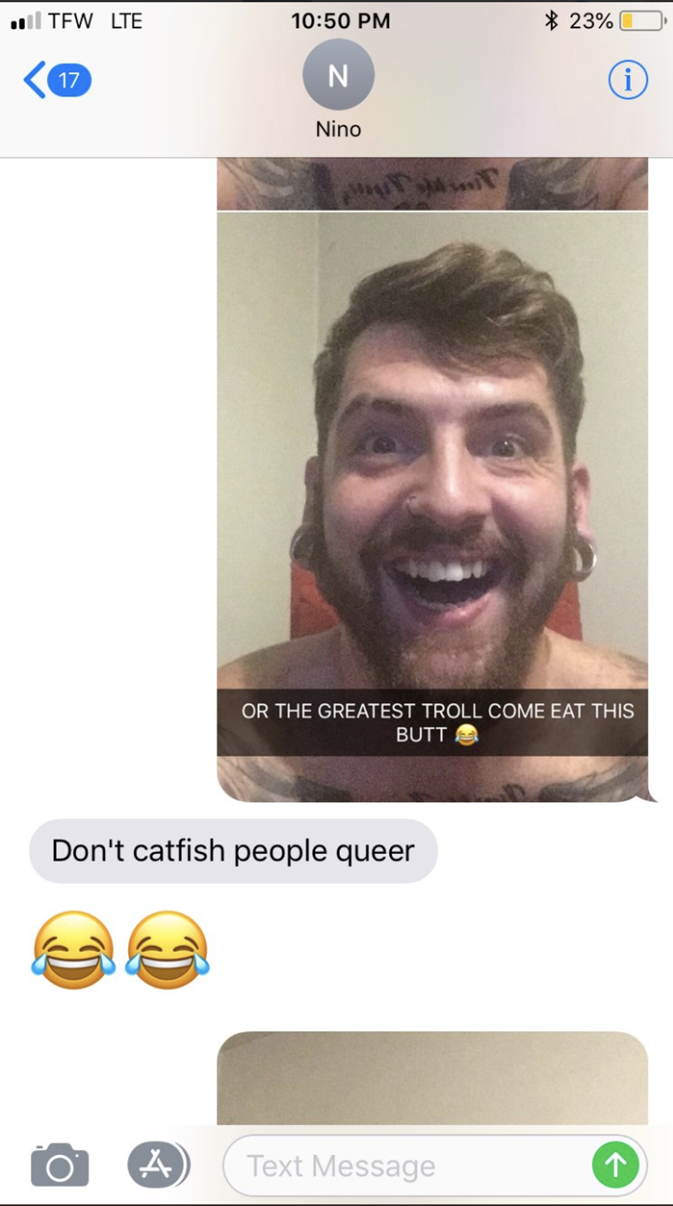 He has also successfully trolled a guy, Nino, in search of Courtney.