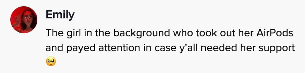 Many commenters also couldn't help but notice the concerned female passenger who was seated across the aisle, who was seen in the clip.