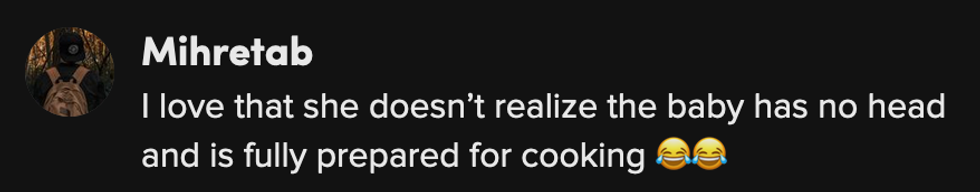 The clip ended with him asking her which one to cook—"the baby or the mom"—Devin replied "The mom!"