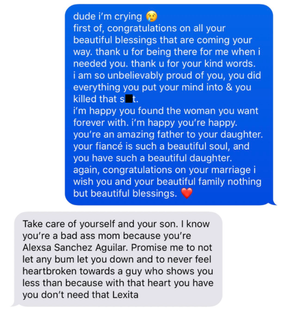Alexsa Sanchez Aguilar shared the emotional text exchange that left her "speechless" on Twitter: