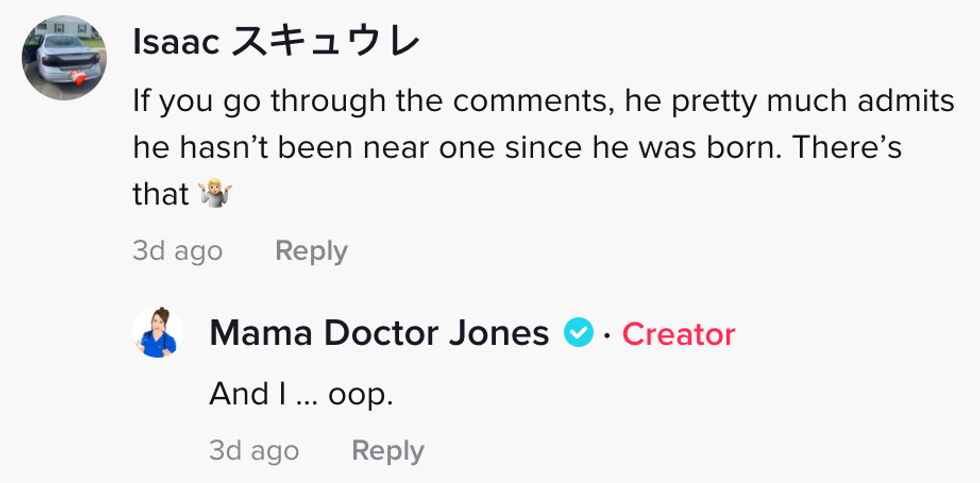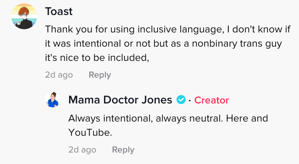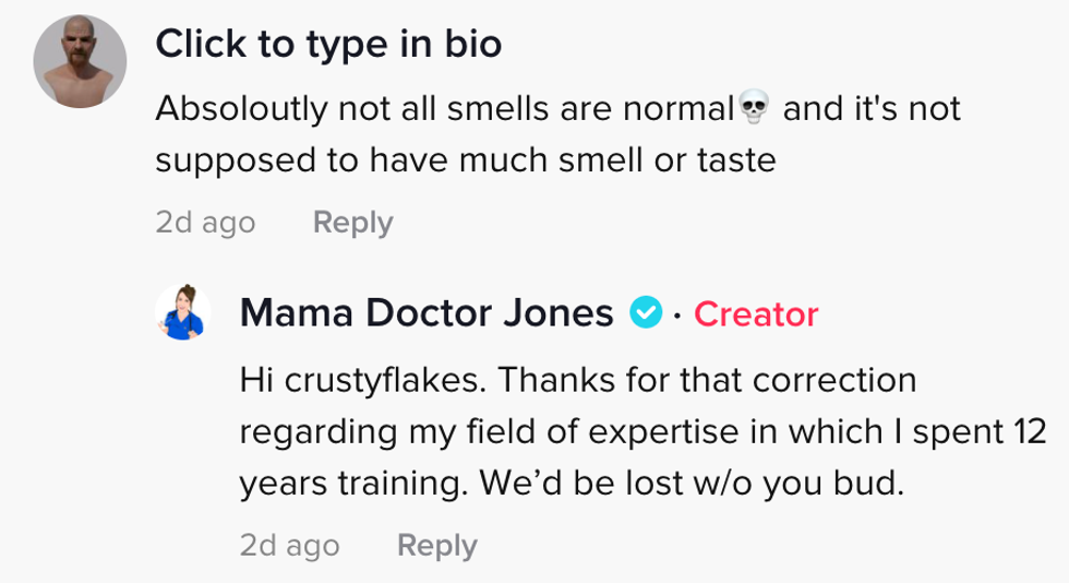 One of those things is reproductive health. After seeing a TikTok where a man said a woman's vagina smelling like anything but water was "disgusting," Dr. Jones, known on TikTok as @mamadoctorjones, decided to school him.