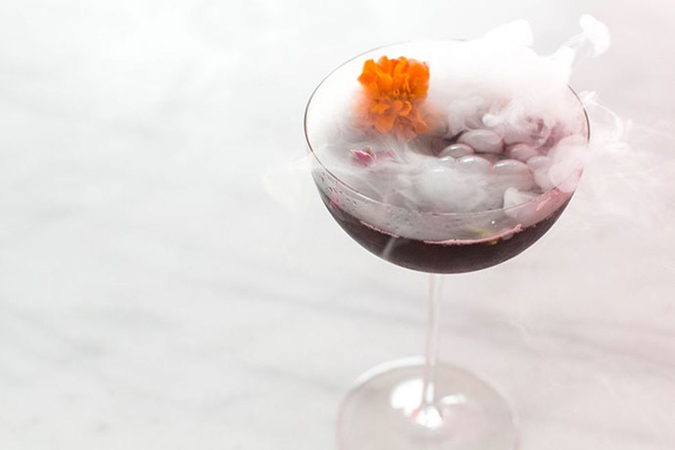 If you're looking for cocktails in the Halloween spirit, but not so gruesome, try more flavors that celebrate the autumn season in color and bounty. Check out this dark beautiful Spooky Sangria made with red wine. Add a chip of dry ice to get it bubbling and fogging when served.