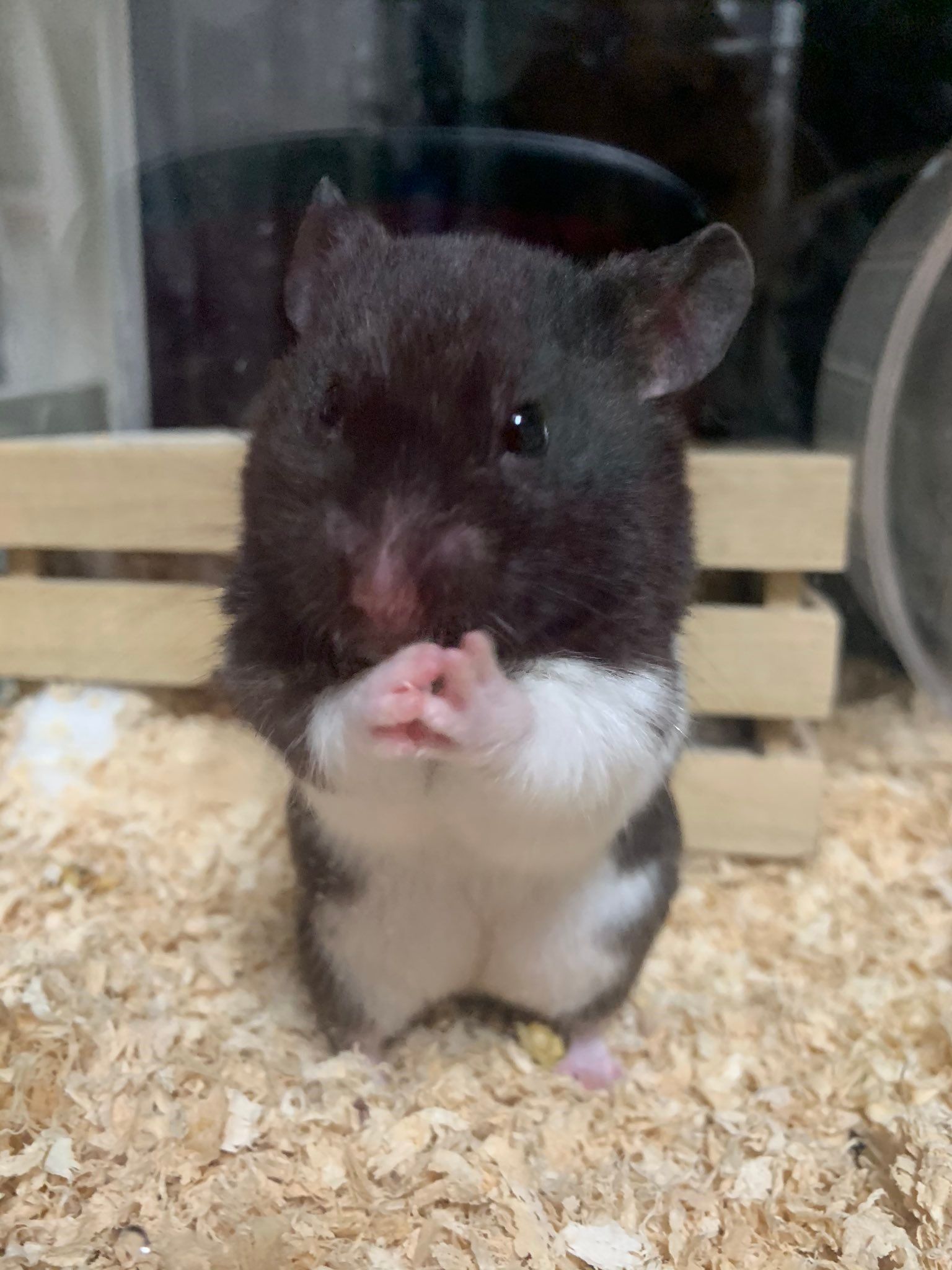 Six-month-old Kuro, a black and white golden hamster, was pictured by his Japanese owner Yuka Hirata as he attempted a daring evacuation of his cage.