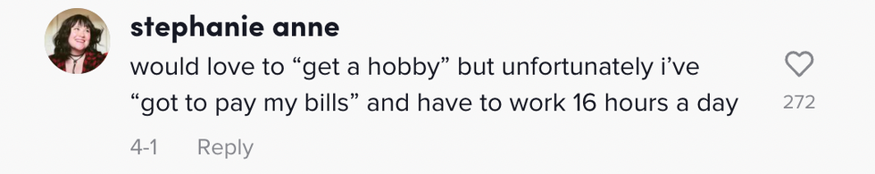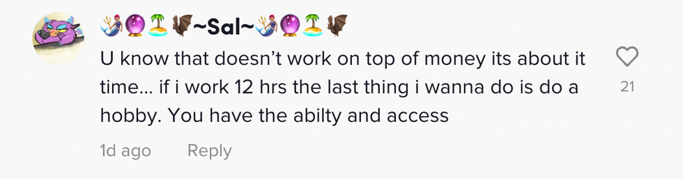 Several of the comments were quick to point out to Gabbie their jobs hindered their ability to take up a hobby.