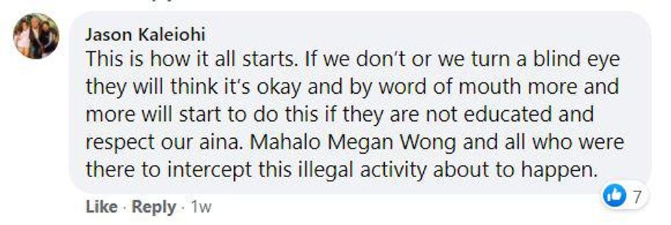 That video ends with Wong shouting to people by the water to call to the Hawai'i Department of Land and Natural Resources (DLNR) who will fine anyone who does not have a permit to be on the beach.