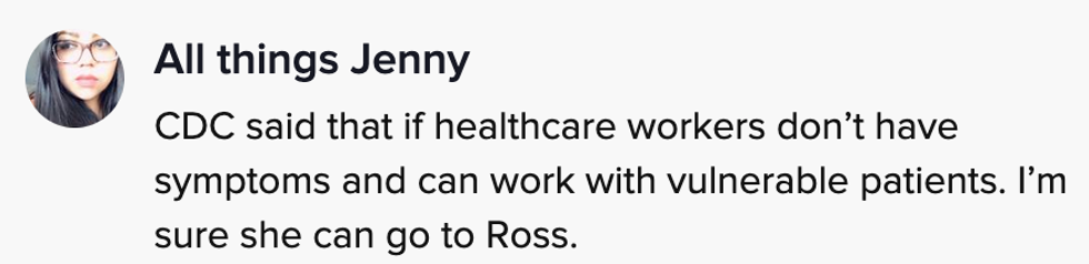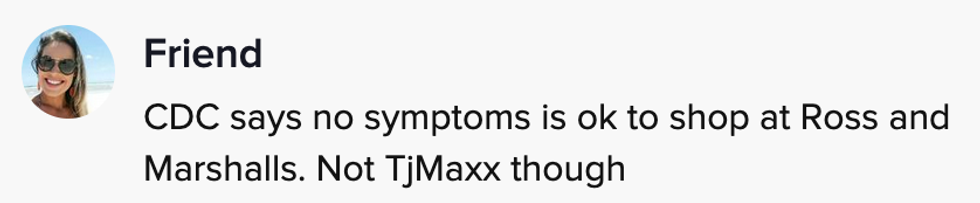 TikToker @eliicoco was shopping at a Ross clothing store and ran into a patient who had tested positive for COVID-19. How did she know? She had previously tested her and saw the result.