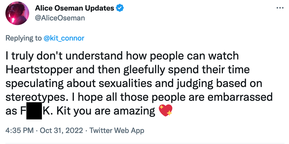 “I truly don’t understand how people can watch ‘Heartstopper’ and then gleefully spend their time speculating about sexualities and judging based on stereotypes."