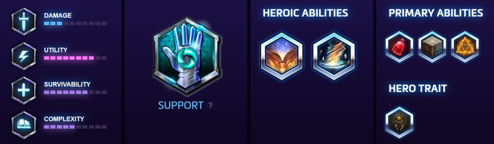Both his Primary and Heroic Abilities receive boosts through his Talents as he levels up. For instance, after hitting his first level, players can unlock “Field Study” to grant him 15% Spell Power for 14 seconds with each enemy Hero hit by “Scroll of Sealing.” Other talents include “Rejuvenation Potion,” which restores ten mana and heals an additional 108 with each healing potion and “Respect the Elderly,” which Silences and Blinds enemies affected by “Stay Awhile and Listen.”