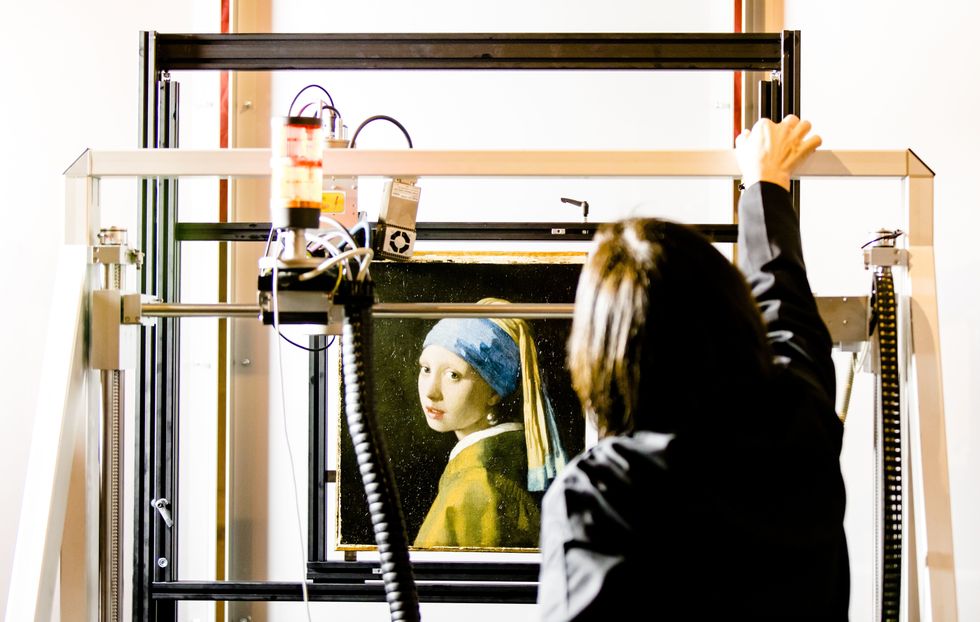 The painting was placed in a purpose-built glass room in early 2018 so visitors to the museum could watch as researchers and their hi-tech machines took what amounted to a full-body scan of the work completed by Vermeer around 1665, which is sometimes referred to as the Dutch Mona Lisa.