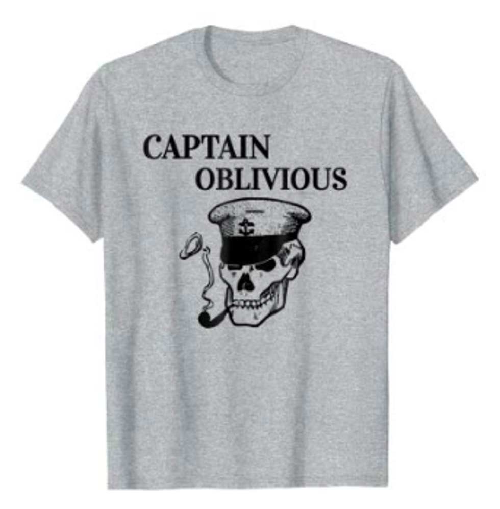 If you're a member of the oblivious crowd, you can warn others with this Captain Oblivious shirt, available here.