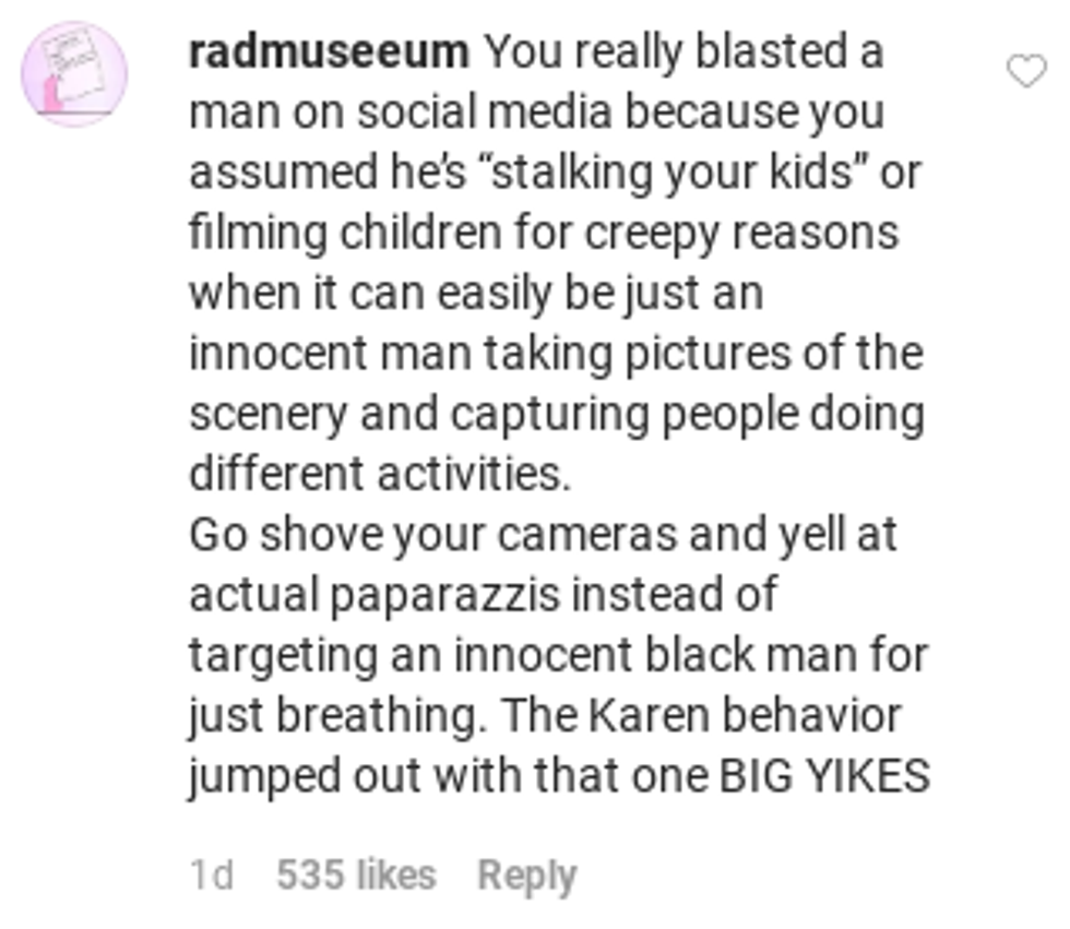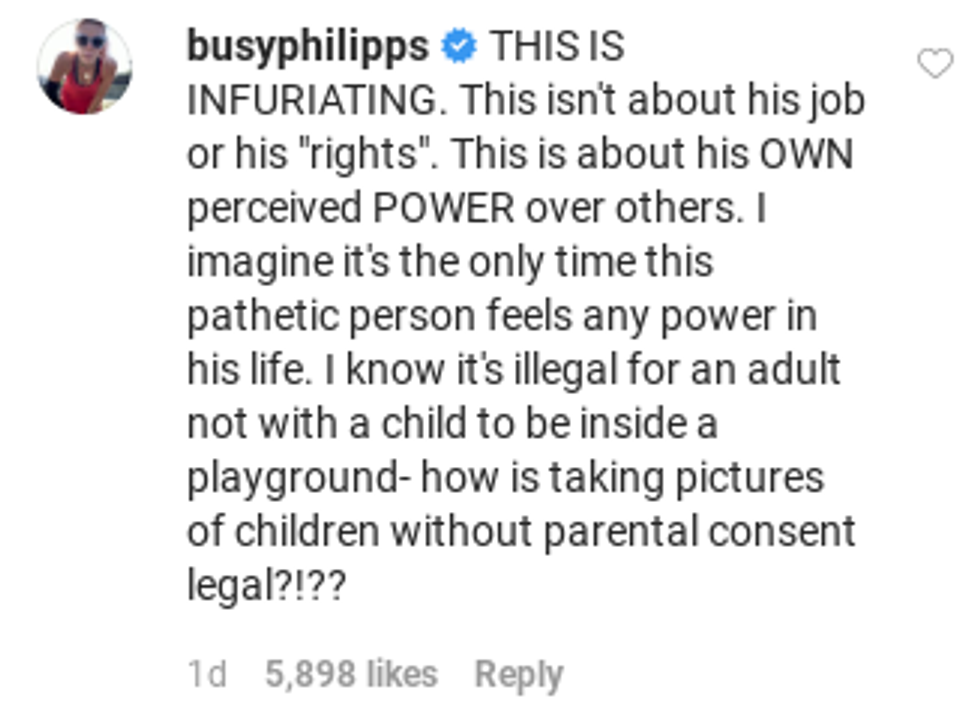 "This is beyond unacceptable and I stand behind you with an army of Mothers who applud you for refusing to back down in an instance where yet agai, a paparazzi is stating his right to photograph minors. This video should ignite a huge conversation around paparazzi laws and what is deemed 'ok'."