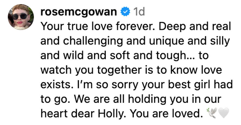 "We are all holding you in our heart dear Holly. You are loved. 🕊️🤍"