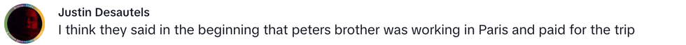 And then there's the big one: Peter's brother actually paid for the trip to Paris.