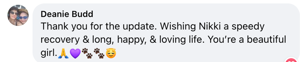 The post seeking a foster for Nikki, who was initially named Nicholas, as well as funds for tests and vaccinations quickly gained traction on social media.