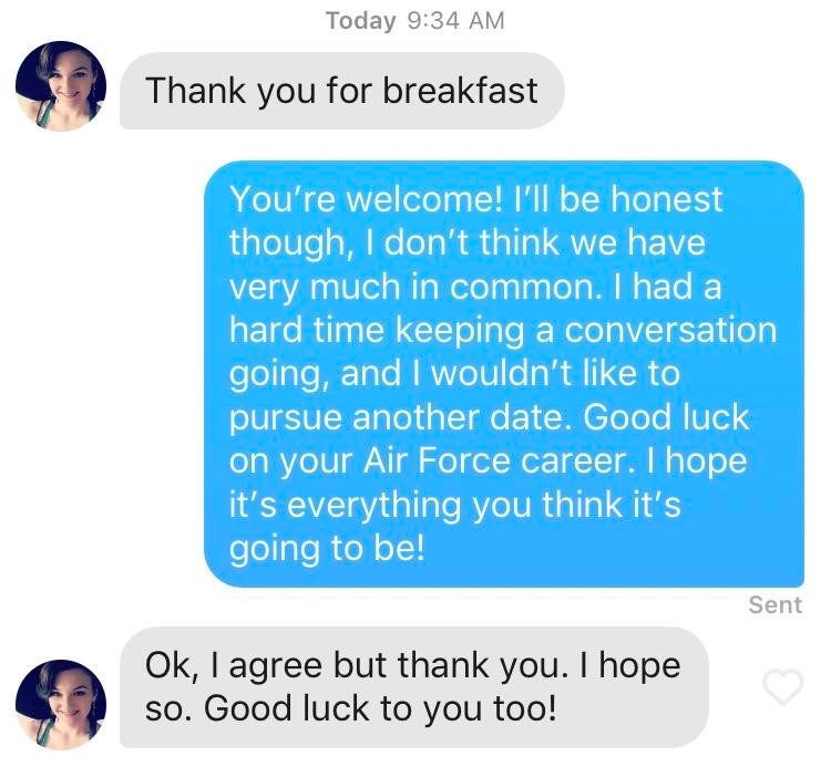 One Tinder user, however, impressed his date by being honest and upfront about how he felt things had went.