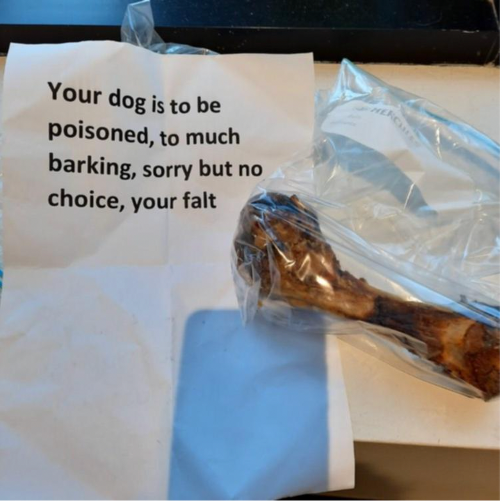 "Your dog is to be poisoned, to much barking, sorry but no choice, your falt."