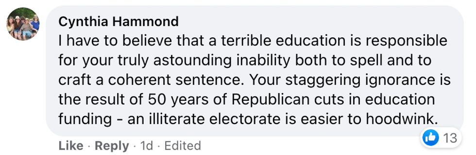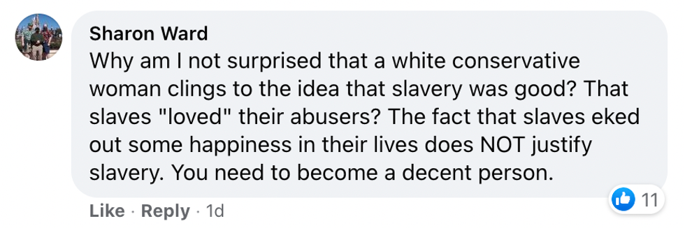 The president of the Woman's Republican Club of New Orleans was lambasted online after she penned a bizarre Facebook rant defending a Republican Louisiana lawmaker's recent suggestion schools make sure to teach the "good" elements of slavery.