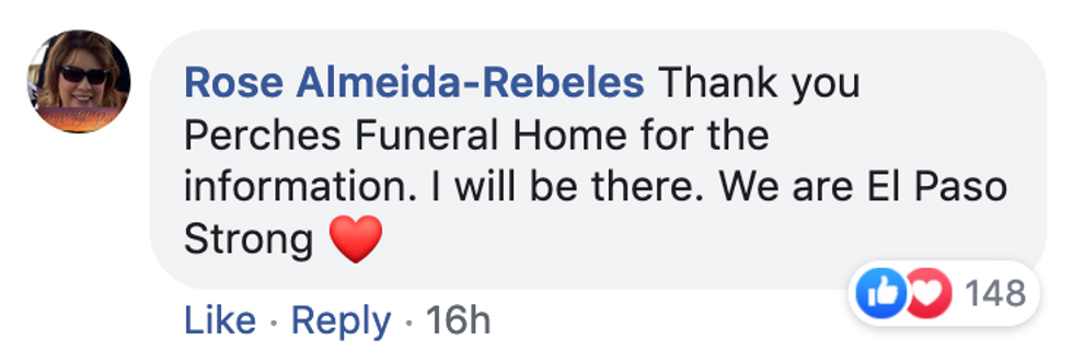 The grieving husband invited members of the public to attend his wife's services at Perches Funeral Home because he had "no other family" in the El Paso area.