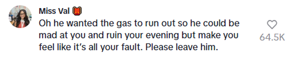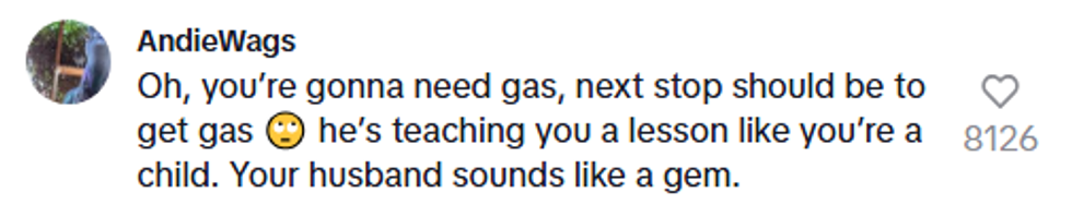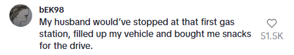 Some wondered initially if the husband resisted helping with gas because of a recurring issue with his wife. If the TikToker had a recurring history of never putting gas in her car, it might explain her husband's reluctance.