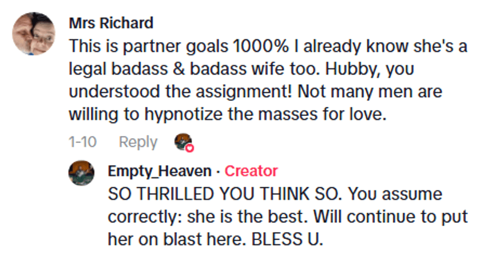 Some complimented TikToker @empty_heaven on supporting his wife during a difficult time.