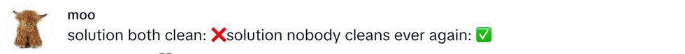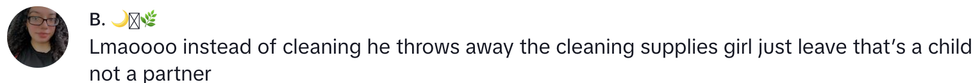 When that strategy had no effect, the TikToker said in another video that she stopped "touching stuff he leaves everywhere," but judging by the footage, that didn't seem to help either.
