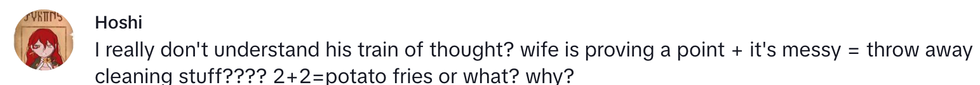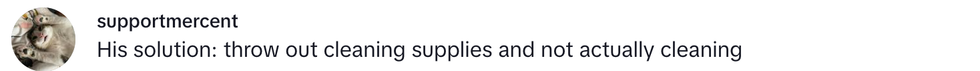 Unfortunately, however, the TikToker didn't get the response she was hoping for. Instead, her husband threw away all of her cleaning supplies since she doesn't "clean anymore."