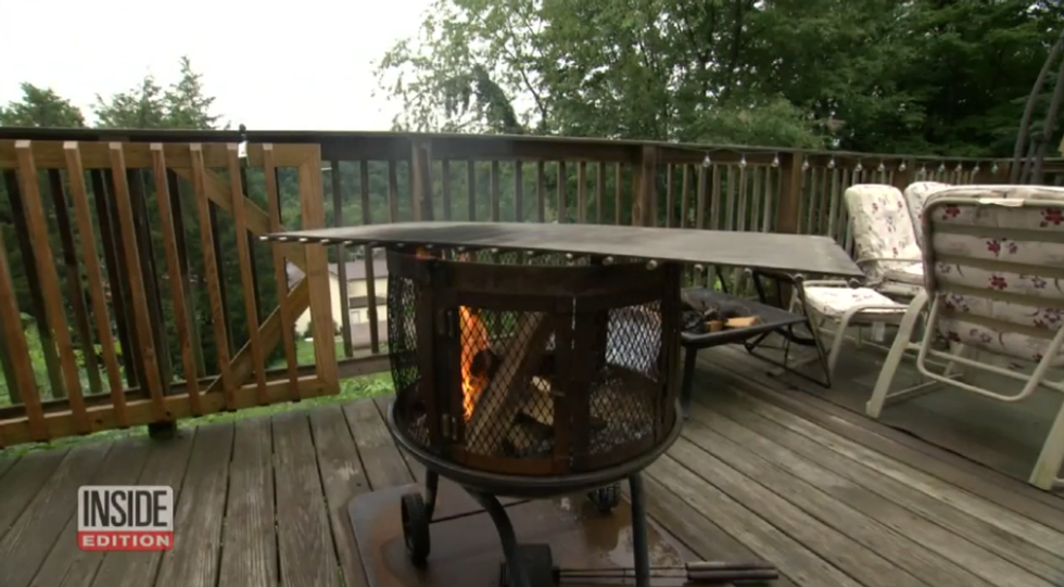 When they were grilling, they decided that the grill rack had gotten too hot and needed to be moved off of the fire pit it was balancing on. They didn't want to wait for it to cool, and this was something they've apparently done before.