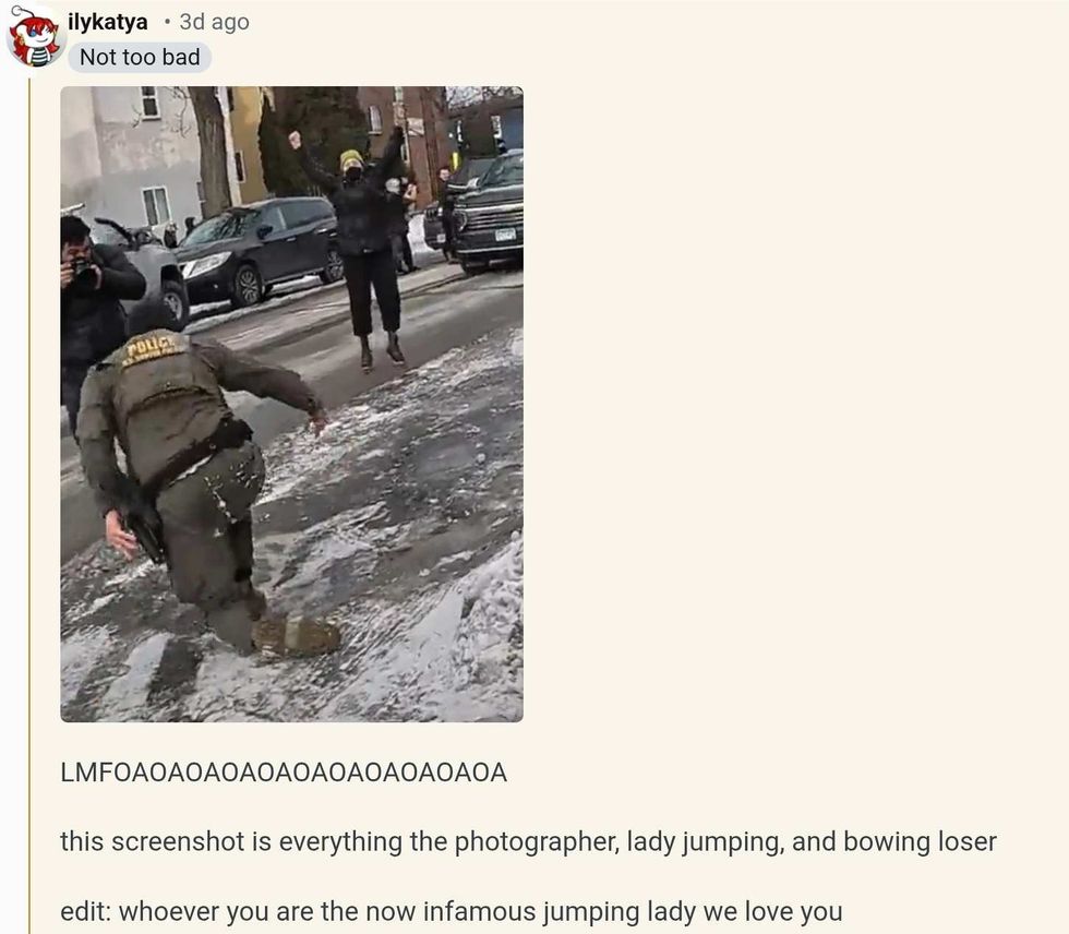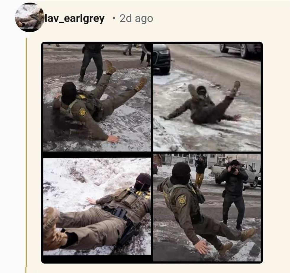 People were not exactly oozing sympathy for the ICE agent who jumped from their vehicle to run across ice like he had something important to do.