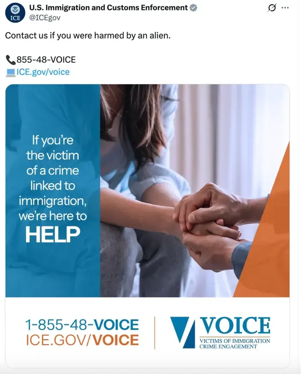 In an attempt to rouse public fears and insecurities, the official ICE account on X posted: