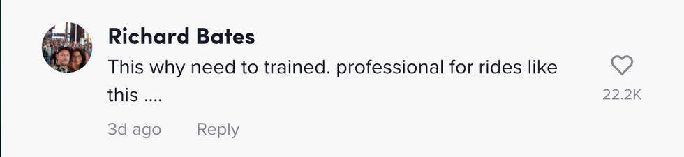 We can then hear a “no” being uttered as the ride ascended, out of view from the camera.