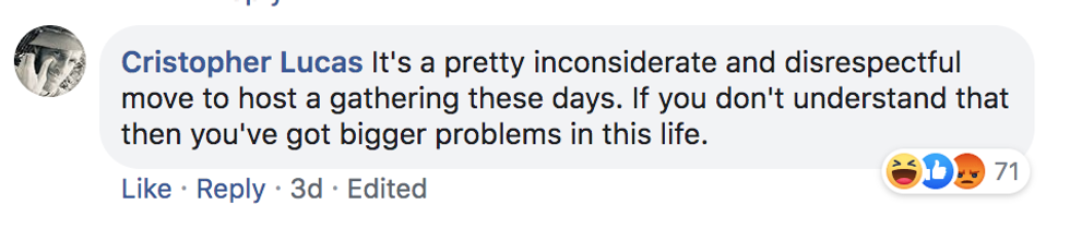 McLean also revealed in the post that other citizens were concerned about the gathering and had asked police to intervene.