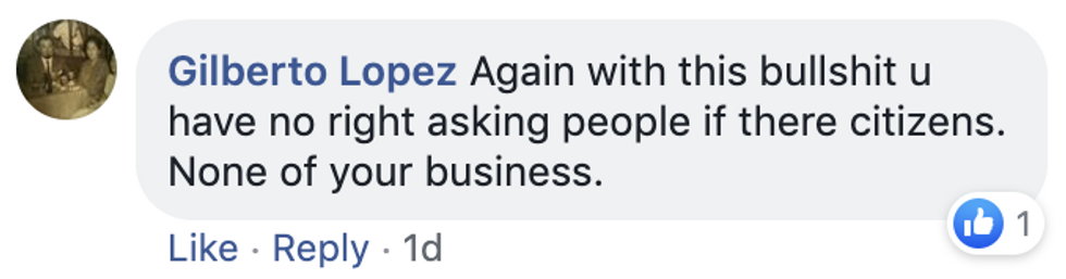 He proceeds to claim that their presence is illegal even when one of the women answers "yes" to whether or not she is a citizen.