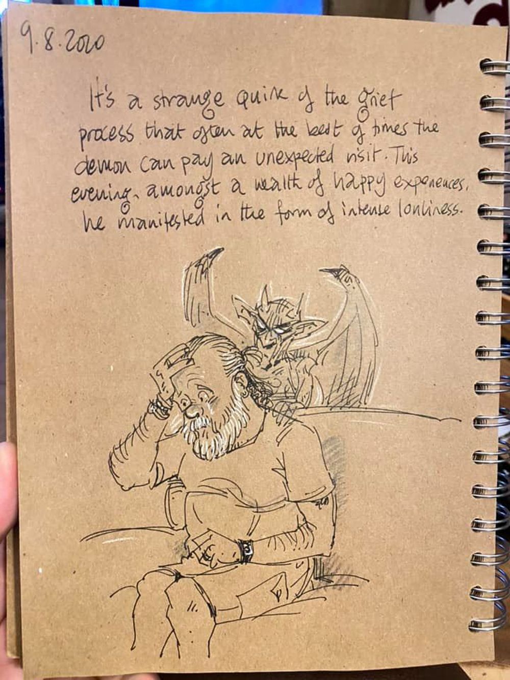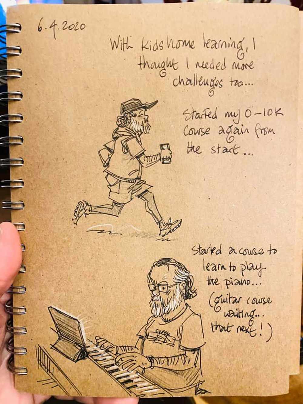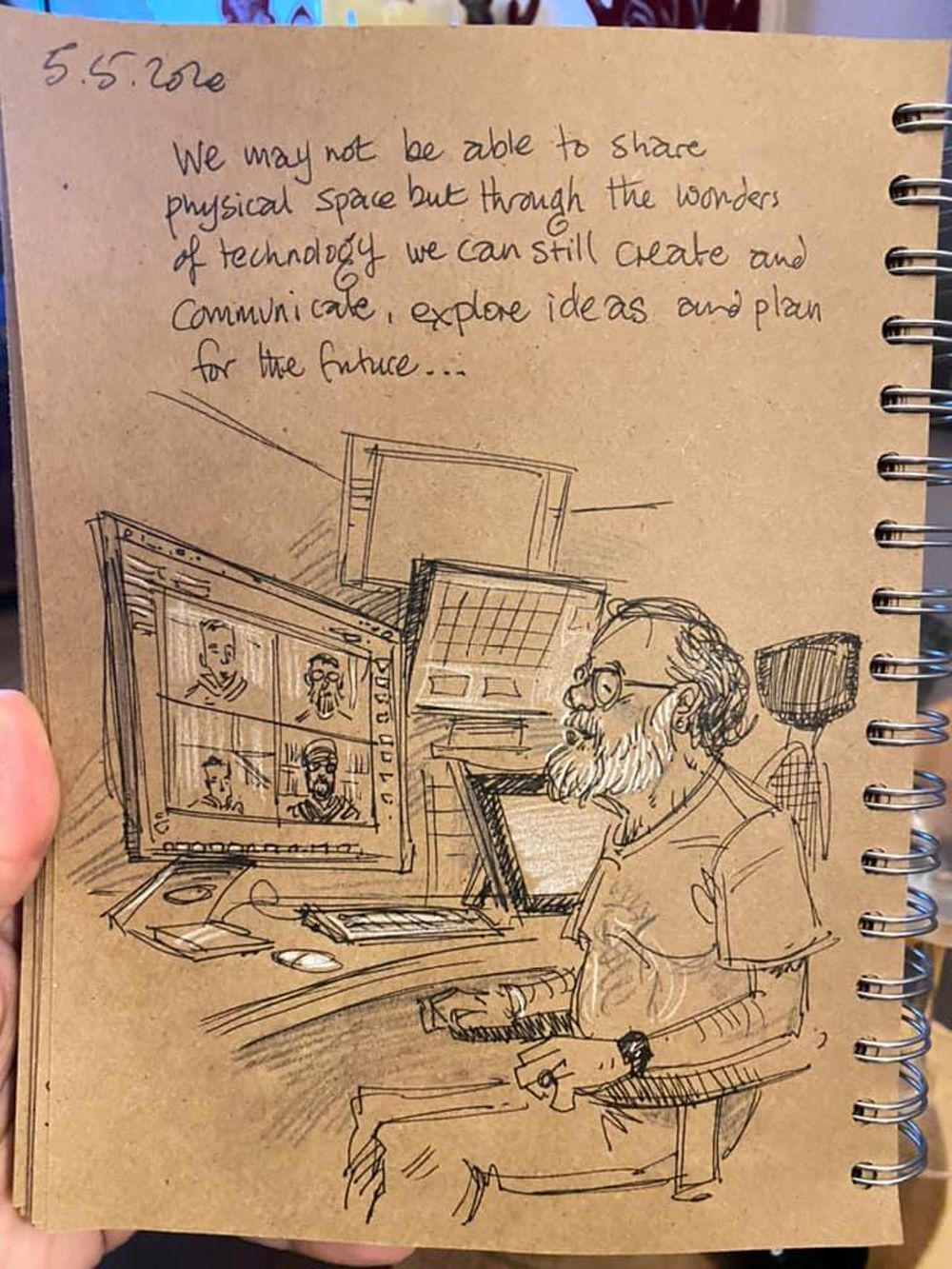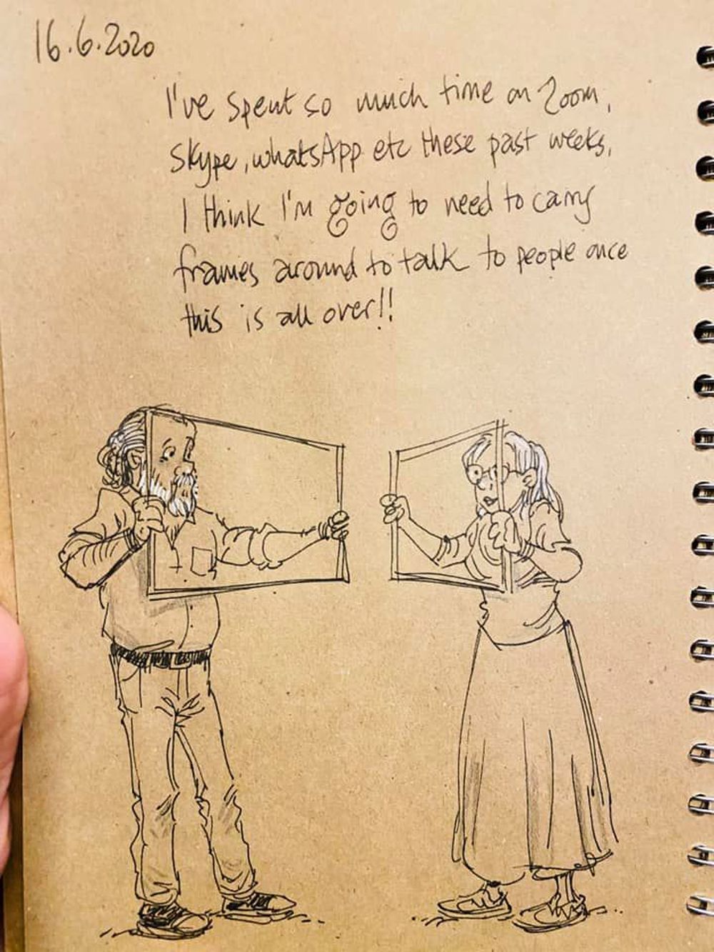 Three years on, he still draws every night before going to bed exploring home schooling, Zoom chats and the ups and downs of life in lockdown in his poignant and often witty pictures.
