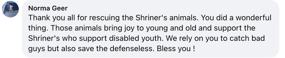 Trump said the animals were being transported from Florida to Indiana for about a month's worth of weekend performances as part of a fundraiser for the Mizpah Shrine Circus, specifically the upkeep of the Shrine Center in Fort Wayne, Indiana.