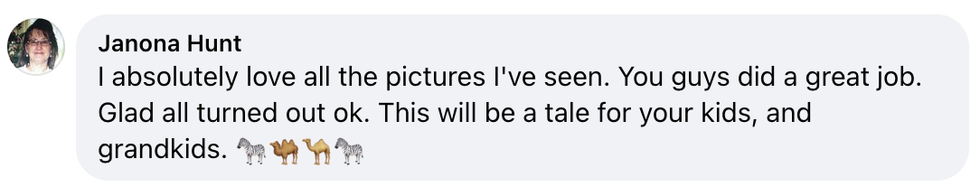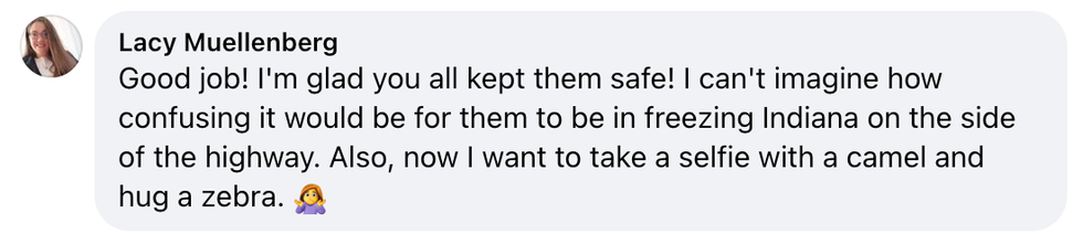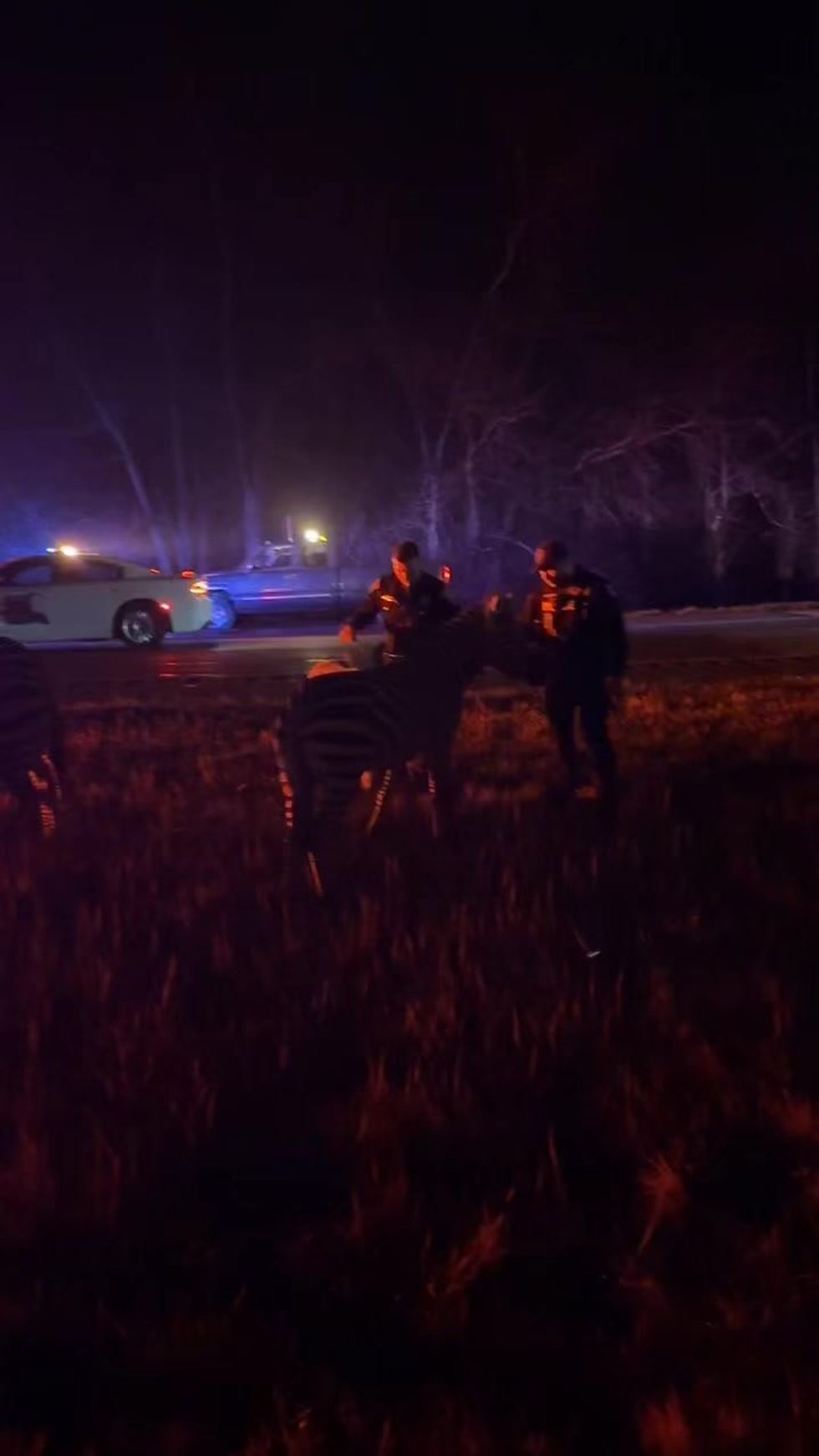 The Grant County Sheriff's Office of Marion, Indiana posted pictures of themselves and the animals to their Facebook page, initially as a warning that the northbound interstate would be closed due to the fire.