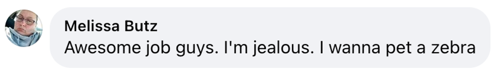 In addition to some startling pictures of the semitrailer aflame, the sheriff's office provided some close-ups of the heroic officers alongside the zebras and camels, as well as some shots of the animals happily grazing onthe highway median.