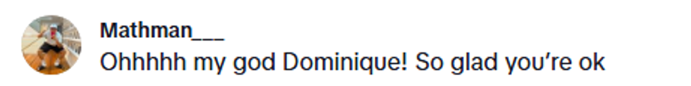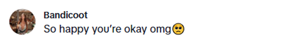 Fellow TikTokers were blatantly shocked by the freak accident and were grateful that Elissa was okay.