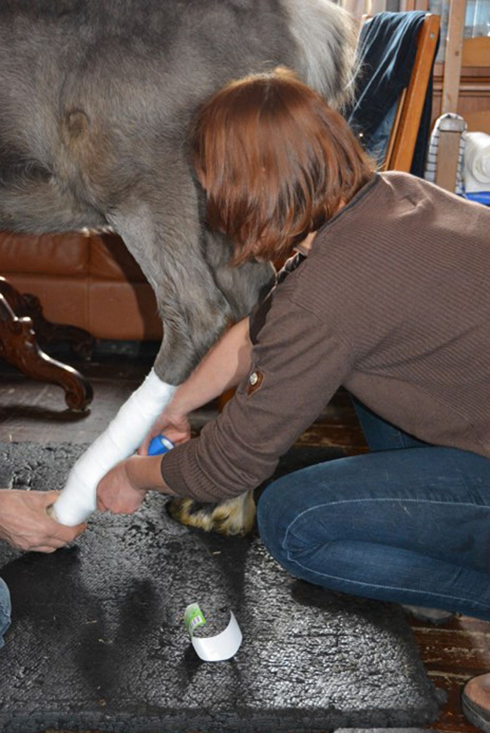 “We don't know exactly how he hurt his leg, but his ankle was totally turned over. Other reindeer herders we spoke to said it really didn't look good. We absolutely didn't want to put him down, so we're so thankful we found Lara. She fell in love with him and we've never looked back."