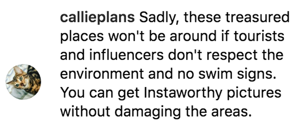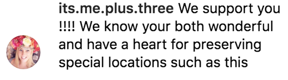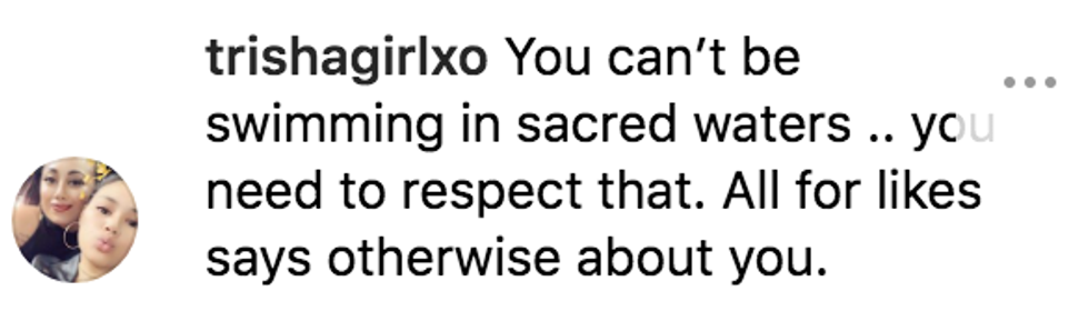 The couple have pushed back against accusations, however, saying the photo was taken over 120 kilometers from the sacred Blue Springs. Codrington wrote on her Instagram: