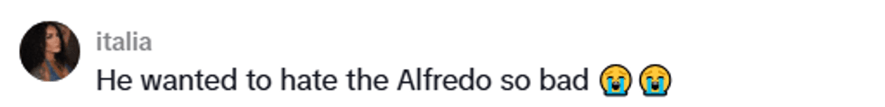 But Alessandro soon had to hilariously apologize to his heritage and all of Italy when he took his first bite of an Olive Garden breadstick dipped in alfredo sauce.