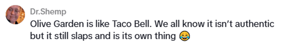 Olive Garden obviously is not authentic Italian food, but to be fair, it's never really claimed to be. Despite being called an Italian Kitchen, Italy more so serves as a point of inspiration rather than an exact collection of recipes handed down from someone's great-grandmother.
