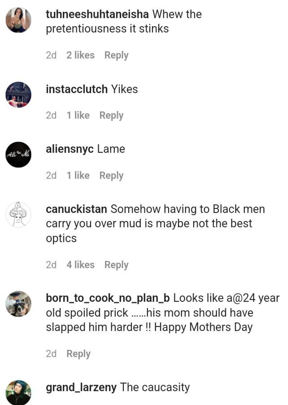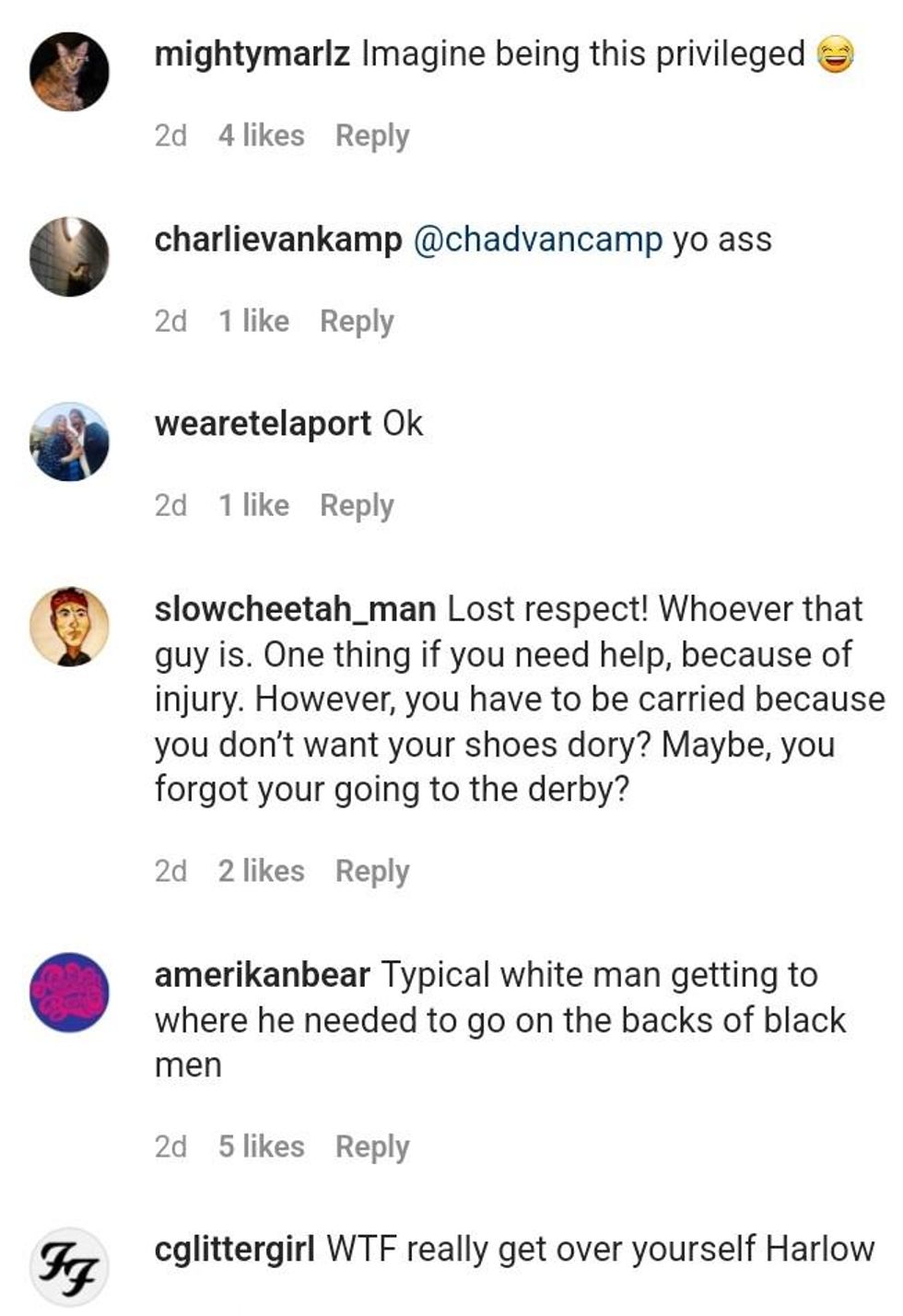 On Instagram, Harlow's flex was no better received.